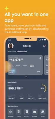 To be eligible for a loan, you must be at least 21 years old, and loans can range from N5,000 to N500,000 with interest rates between 4.5% to 35%. The app also requires no collateral, guarantors, or documents, making it easy for anyone to apply for a loan. Kredi Bank caters to all categories of loan requests, whether you are self-employed or a salary earner.