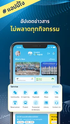 This application is a one-stop platform for university students to access news, class schedules and activities, campus maps, and a virtual student ID card. It also allows students to borrow or reserve equipment and facilities within the university.