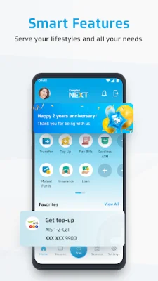 Once you're registered, you can easily transfer, top up, pay bills, withdraw money and even apply for a loan without any hassle. And if you're someone who likes to plan ahead, you can schedule your transactions up to 24 months in advance. Plus, you can personalize your home screen on Quick Menu, Favorite and Profile Picture to match your preference.