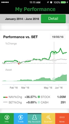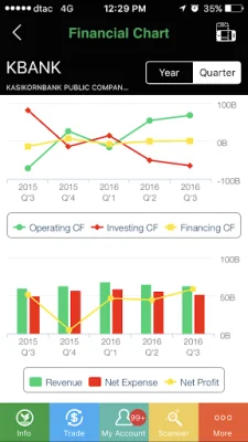 The Research feature offers advanced analytical research from experienced analysts at Kasikorn Securities to support investors in their decision-making process. The Scan feature allows users to perform both fundamental and technical analysis on stocks. The Alerts & Notification feature sends notifications based on stock price alerts and can be customized with conditional adjustments.