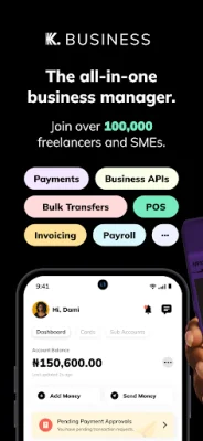 Kuda Business is an all-in-one business management application that offers a variety of features to help streamline and improve your business processes. With Kuda Business, you can easily send estimates and invoices to your clients, making it easier to get paid quickly. You can also make bulk transfers, automate your payroll processes, and pay your business bills without having to switch to another app. This makes managing your business finances more efficient and convenient.