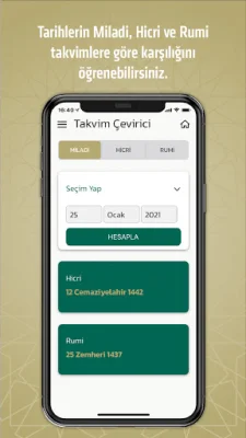 Takvimden seç kısmıyla 2021 yılından dilediğiniz güne gidip o günün içeriklerini erkenden okuyabilir ve beğendiğiniz içerikleri favorilerinize ekleyebilirsiniz. Ayrıca tüm içerikleri dijital ortamda paylaşabilir ve tebrik kartları ile sevdiklerinizin kıymetli günlerini kutlayabilirsiniz. Bunların yanı sıra, takvim çevirici özelliği sayesinde Miladi, Hicri ve Rumi tarihleri çevirebilir ve farklı takvimlerdeki bir tarihin karşılığını öğrenebilirsiniz.