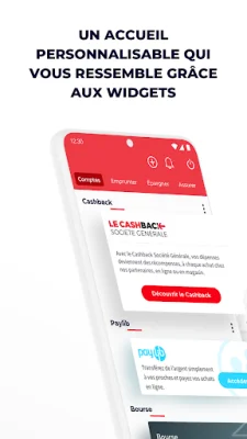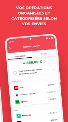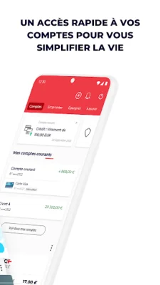 L'application offre également un espace sécurisé où les utilisateurs peuvent personnaliser leur page d'accueil avec des widgets, recevoir des notifications intelligentes en temps réel et gérer leur carte bancaire (plafonds de retrait et de paiement, verrouillage/déverrouillage, opposition, etc.). Ils peuvent également catégoriser leurs dépenses pour mieux gérer leur budget et effectuer différents types de virements (ponctuels, instantanés, différés, permanents, internationaux, etc.).
