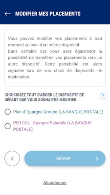En plus de consulter leur épargne, les utilisateurs peuvent également gérer leur compte à travers l'application. Ils peuvent répondre rapidement et facilement à leur prime d'intéressement ou de participation. De plus, ils ont la possibilité de modifier leurs choix de placement et de transférer leur épargne d'un fonds à un autre ou d'un produit à un autre. Les utilisateurs peuvent également effectuer des versements ponctuels ou programmés et demander un remboursement à travers l'application.