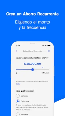 Crea tu cuenta de ahorro en línea en menos de 10 minutos y descarga la aplicación. Con ella, podrás monitorear tu rendimiento, establecer un ahorro recurrente, transferir tu dinero a través de SPEI, editar tu perfil y tener un control total sobre tus ahorros. Si ya tienes una cuenta de ahorro, ¡ya tienes una conexión con Banco Sabadell! Vive una historia de amor con tu dinero y comienza a ahorrar hoy mismo con la ayuda de nuestra aplicación fácil y rápida. Tu dinero estará protegido y siempre disponible a través de SPEI, porque ahorrar no tiene que ser una relación tóxica. Descubre nuestra opción incondicional para hacer crecer tu dinero sin comisiones ni condiciones.