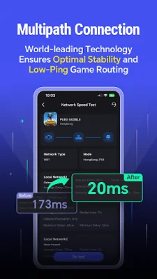 The application has a global server coverage of over 3000 servers in 80 countries, including dedicated nodes for popular games such as PUBG Mobile, COD: Mobile, Mobile Legends Bang Bang, Free Fire, Brawl Stars, and ROBLOX. This allows players to connect to the nearest server for a better gaming experience.