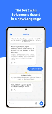 LangAI is an AI language learning app that allows you to practice and improve your language skills in a stress-free and personalized manner. With the option to either speak or chat in your chosen language, LangAI's open-ended conversation feature creates an immersive environment that simulates talking to a native speaker. This helps build confidence and fluency without the fear of judgment or embarrassment, while discussing topics that interest you.