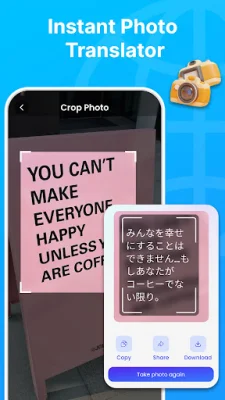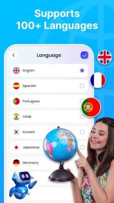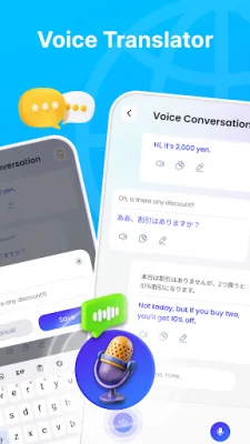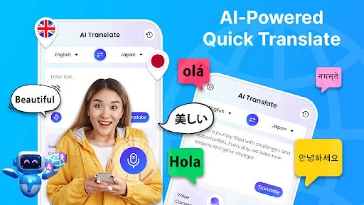 Language Translator: AI Voice is a convenient and reliable translator app that helps you overcome language barriers wherever you are. It is designed to provide quick and accurate translations for all your communication needs. Whether you need to translate text, have a conversation with someone in a different language, or even translate photos, this app has got you covered. With just one tap, you can use the instant translator to translate any content quickly and efficiently. You can also type and translate between over 100 languages in seconds with the text translator feature. The voice translator allows you to speak and get real-time translations, making conversations with people from different languages seamless. One of the standout features of Language Translator: AI Voice is its conversation mode. This AI-powered two-way talking translator enables live, face-to-face chats with people who speak a different language. It makes communication easier and more natural, without the need for a human translator. The app also offers a camera translator feature, which allows you to instantly translate photos, menus, and printed text by simply scanning them with your camera. This is perfect for travelers who may encounter foreign languages in their daily activities. You can also save frequently used phrases and access your translation history anytime with the save and reuse feature. This makes it easier to communicate with people you frequently interact with in different languages. Language Translator: AI Voice stands out from other translation apps because of its fast and accurate translations powered by AI technology. It supports text, voice, and picture translation in one app, making it a versatile tool for travel, study, business, and daily use. Plus, you can save your history and bookmarks for quick access, making it a convenient and user-friendly app. Download Language Translator: AI Voice now and experience the power of real-time translation at your fingertips. Please note that the app uses Accessibility Service permission to detect on-screen text and assist with quick translation, ensuring faster and more accurate translations for a better user experience. No data is collected or stored, ensuring your privacy and security.