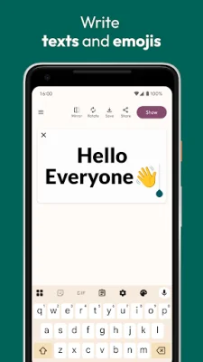 In summary, this app is a versatile and user-friendly tool for communicating in various situations. Its features, such as the fullscreen LED-style display and the ability to write with emojis, make it a fun and effective way to get your message across. And with its privacy-focused approach, users can feel comfortable using the app without any concerns about their personal information.