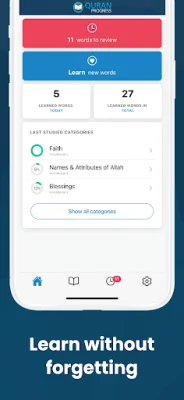 Quran Progress is a highly-rated app that focuses on teaching users how to read, understand, and memorize the Quranic Arabic language. It is the number one app for learning Quranic Arabic and is perfect for those who want to fully appreciate the beauty of the Quran. If you have been struggling with understanding the Arabic language while reading the Quran or saying your prayers, then this app is the perfect solution for you. Whether you are a beginner or have some knowledge of Arabic, Quran Progress only requires 5 minutes of your time each day to help you achieve your goals. With this app, you can easily learn to read, understand, and memorize the Quran, as well as improve your relationship with Allah. Additionally, you can also learn the Arabic language, which will not only enhance your understanding of the Quran but also help you focus during your prayers. So, why should you choose Quran Progress over other language learning apps? Firstly, the app focuses on the most commonly used Quranic vocabulary, which consists of over 1500 words. This means that you will have to put in less effort to achieve better results. Secondly, the app provides you with a virtual coach to assist you in your learning journey. This makes the learning process easier and more enjoyable. Moreover, Quran Progress offers a stress-free learning experience by automatically generating a revision plan for you. This ensures that you do not forget what you have learned. The app also utilizes spaced repetition, which is a proven method for retaining information. And to make learning even more fun, the app offers a variety of exercises such as quizzes, multiple-choice questions, writing, and guessing games. As a bonus, Quran Progress also includes all the vocabulary from the Medina book, volumes 1 and 2. This makes it a comprehensive and valuable resource for learning Quranic Arabic. And to ensure the privacy of its users, the app has a strict privacy policy in place, which can be found on their website. So, if you want to learn Quranic Arabic in a fun, efficient, and stress-free way, Quran Progress is the perfect app for you.