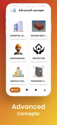 The app covers a wide range of topics, including the planning of buildings, precast concrete, surface finishing materials, essential services buildings, and temporary structures. It also includes information on how to select interior finishes, design exterior wall systems, and maintain buildings. With this app, users can learn about all aspects of building construction, from the foundation to the roof.