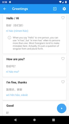 Learn Chinese is an application designed to help users learn the Chinese language. It features a carefully translated list of essential phrases, with high quality audio pronunciation by a native speaker. The app is recommended for tourists and business people visiting China, as it aims to be authentic in its pronunciation while still being easy to understand.