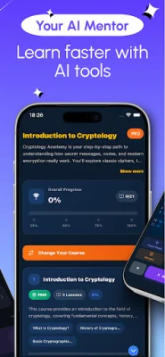 Cryptology is a fascinating field that combines mathematics, logic, and computer science to protect data, verify identities, and secure communication in the digital world. With the Learn Cryptology app, you can easily access and understand complex topics related to cryptography, right from your phone. The app offers a unique learning experience with its AI-powered tutor, interactive encryption tools, cryptography playground, puzzle-based challenges, and a complete curriculum.