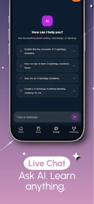If you need any clarification or assistance while learning, the app's AI chatbot is available 24/7. You can ask for quick answers, algorithm breakdowns, or even Python or Java code to implement a cipher. This feature makes it feel like you have a cryptography professor in your pocket, always ready to help.