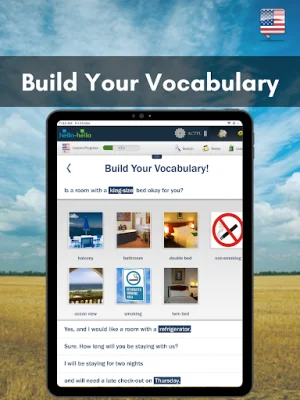 Hello-Hello offers the top-selling English course in multiple countries, including the US, UK, Italy, Spain, France, Germany, Brazil, China, and Russia. This course is based on a research-based methodology developed in collaboration with the American Council on the Teaching of Foreign Languages (ACTFL), the most prestigious institution for language teachers and professionals. This methodology is followed by major universities in the USA. The course focuses on developing communication skills from the very first lesson. It offers 30 conversational lessons based on real-life situations, rather than just a collection of words and phrases. The dialogues are presented and then broken down into sentences, allowing for practice in pronunciation and writing skills. In addition to communication skills, the course also helps with vocabulary building. It offers hundreds of fun and interactive flashcards, as well as an innovative "Build Your Vocabulary" exercise where users can practice alternate words and phrases from within the dialogues. The app is fully localized, meaning that users can see the entire content, including translations, in their native language. There are 12 foreign languages to choose from, including English, Spanish, French, German, Italian, Chinese, Japanese, Portuguese, Russian, Dutch, Indonesian, Hindi, and Hungarian. Users can also save their own notes from within the lessons for later review. The app does not require an internet connection, as all the content is stored within the app for easy access anytime, anywhere. The user-friendly interface is beautifully designed with graphics. Hello-Hello values user feedback and has a "Contact Us" icon for easy communication. Users can try out the content for free before deciding to purchase the full course. Hello-Hello is an innovative language learning company that offers online and mobile courses. Their website combines social networking with language learning, allowing users to interact with native speakers from around the world. The iPad apps are among the top language learning apps available. The conversational courses were developed in collaboration with ACTFL, the largest association of language teachers and administrators, serving over 12,000 educators. For more information, users can visit the ACTFL website. Hello-Hello strives to be original and SEO-oriented in their approach.