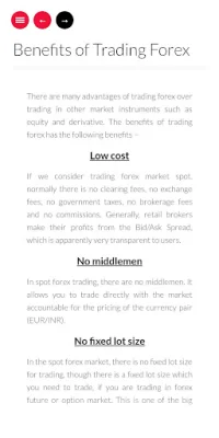 The application offers a range of features that make it a useful tool for learning about forex trading. First and foremost, it is completely free of cost, making it accessible to anyone who wants to learn. The application also covers both basic and advanced topics, ensuring that users can progress at their own pace and have a thorough understanding of the subject matter.