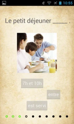 Le Bon Mot offers a variety of interactive and engaging learning activities, including multiple choice tests, paper drag 'n drop quizzes, word order exercises, and a hangman-style game. These activities are highly motivational, with star ratings and trophies to track progress. The app also offers Google Play Games Achievements to further incentivize learning. With just a few weeks of using the app, users can train the 2,000 most important French words and phrases without much effort.