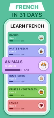 With over 10,000 French vocabulary words and a variety of fun and effective lessons, this app makes learning French an enjoyable experience. The lessons are designed like games, making it easier to stay engaged and motivated while learning. The app is divided into different classes, making it easy to navigate and providing a structured learning experience.