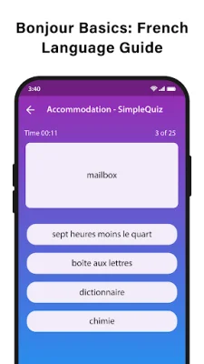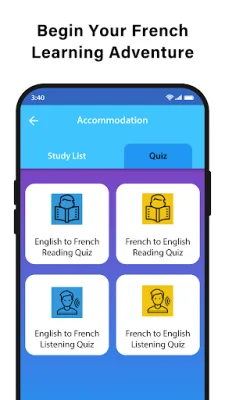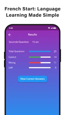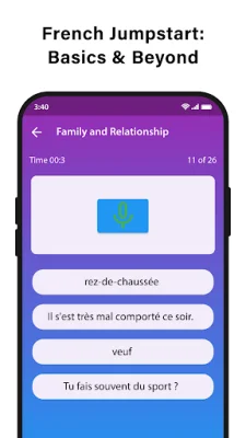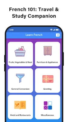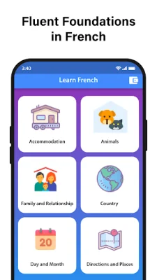 The Learn French - Speak French app is a user-friendly and convenient way to learn the French language. It provides real-life examples and conversations to help users understand and use the language in practical situations. With just 10 minutes a day, users can learn basic French and set personalized goals to track their progress and improve their communication skills. This app is suitable for all age groups and can be used while traveling, at work, school, or even just talking to friends. It emphasizes the importance of learning core words and phrases rather than just memorizing vocabulary. The lessons are divided into various categories, making it easy for users to navigate and learn at their own pace. One of the key features of this app is that it can be used offline, without the need for an internet connection. This makes it a convenient tool for learning on the go, without any interruptions. The app also includes a variety of quizzes to test users' understanding and progress, with options for both English to French and French to English quizzes. The app covers a wide range of topics, including everyday conversation, asking for directions, greetings, and more. It also includes a topic-based vocabulary section, with 20 different categories to choose from. Users can also create their own favorite list for easy access to frequently used words and phrases. Overall, the Learn French - Speak French app is a comprehensive and effective tool for learning the French language. It is suitable for beginners who want to improve their communication skills and can be used anytime, anywhere. Download the app today and start your journey towards speaking French with confidence!