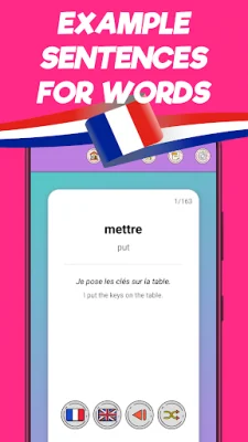 This application is designed to help users improve their French vocabulary quickly and efficiently. It is suitable for all levels, whether you are a beginner or an advanced learner. The app offers a variety of features to aid in memorization and learning, making it a valuable tool for anyone looking to enhance their French language skills.