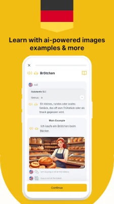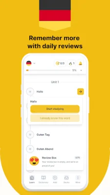 Memoryto is an application that helps users learn German in a simple and effective way. It offers a variety of features to practice reading, writing, listening, and speaking, making it suitable for beginners as well as those with advanced knowledge of the language. With Memoryto, users can incorporate German into their daily lives, whether it be at school, work, or while traveling. One of the key features of Memoryto is its AI-powered learning that adapts to the user's level and progress. This makes it easier for learners worldwide, as it supports 88 native languages. The application also offers different types of flashcards with example sentences and images for better context, as well as accurate pronunciation to improve listening, speaking, and spelling skills. Additionally, Memoryto uses SRS-based training, which has been proven to improve memory and knowledge. Memoryto is designed for all types of learners, including students preparing for exams, professionals looking to improve their communication skills at work, and adults and kids who want to build their daily German knowledge. It is a comprehensive tool for mastering German vocabulary, with features such as a built-in dictionary with synonyms, collocations, and detailed meanings, as well as a personalized custom deck builder to create and organize study sets. With Memoryto, users can start learning German today and notice their progress quickly. The application offers a simple and natural way to grow confidence in using the language. It is a daily, easy, and effective way to improve brain skills, enhance communication, and achieve language learning goals. Users can download Memoryto now and start learning German the smart way. Whether you're just starting out or looking to improve your skills, Memoryto is the perfect tool for mastering the German language.