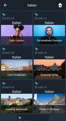Bluebird offers a comprehensive curriculum, covering 2,000 high frequency words, the top 100 verbs with conjugations, and the ability to build complete sentences and handle complex conversations. Users can track their progress through 2,000 quizzes that test their knowledge and reinforce what they have learned. The quizzes also offer a variety of question types to evaluate listening, reading, and writing skills.