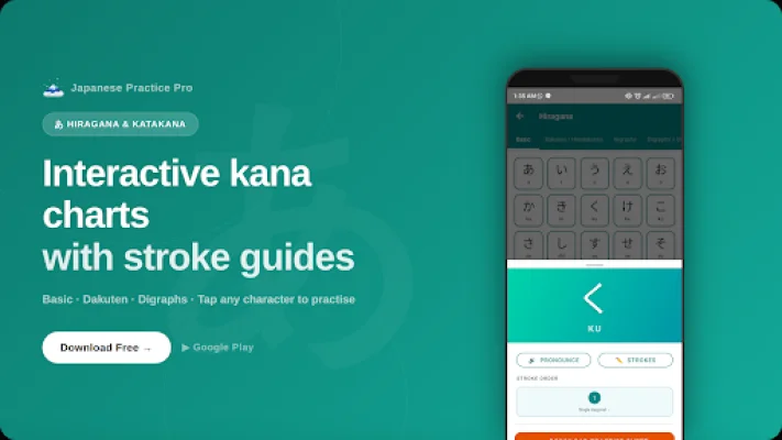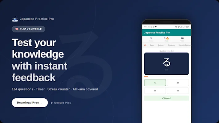 Japanese Practice Pro is the ultimate companion for anyone looking to start their Japanese adventure. Whether you're planning a trip to Tokyo, diving into Anime without subtitles, or simply starting a new hobby, this app has everything you need to learn the language and culture.