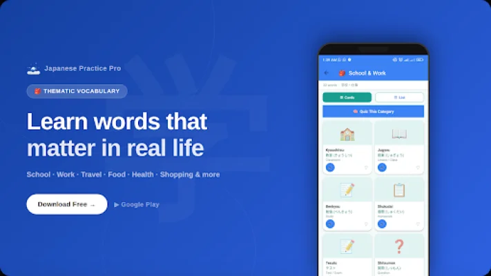 In summary, Japanese Practice Pro is a comprehensive and user-friendly app for anyone looking to learn Japanese. With its focus on practical sentences, mastery of the writing system, and offline capabilities, it's the perfect companion for your Japanese adventure. So why wait? Download Japanese Practice Pro now and start your journey towards fluency!