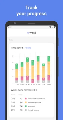 ReWord is an application designed to help users efficiently learn Japanese by providing a dedicated system for memorizing new words and phrases. It recognizes the importance of systematizing memorization in foreign language learning and aims to make the process easier for users. The app features thousands of Japanese words and phrases divided into thematic categories, allowing users to choose which category they want to focus on and easily switch between categories. Users can also add their own words and categories, creating a personalized word base to master first. One of the helpful features of ReWord is its flashcards with pictures, which serve as mental shortcuts to aid in building vocabulary and understanding the nuances of word meaning and usage in real-life situations. The app also utilizes spaced repetitions, a science-based approach to memorizing foreign words, to ensure the highest efficiency in language learning. ReWord also allows users to track their progress by setting a daily goal and working towards achieving it every day. Additionally, the app offers an offline mode, making it possible for users to learn Japanese wherever they go. To achieve the best results, it is recommended to use ReWord at least twice a day with regular breaks every few hours. Starting with just five words a day, users can have at least 1,825 new words in their active vocabulary within a year. By increasing the daily goal and taking more Japanese lessons, users can accelerate their progress and learn Japanese even faster. In summary, ReWord is a user-friendly and efficient app for learning Japanese. With its dedicated system, personalized word base, and helpful features such as flashcards and spaced repetitions, users can easily and effectively memorize new words and phrases. Whether used as a supplement to traditional Japanese lessons or as a standalone learning tool, ReWord is a valuable resource for anyone looking to learn Japanese in a hassle-free way.
