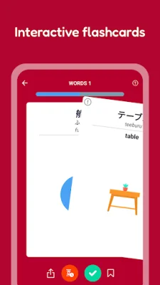 With Tobo, you can build a daily habit of learning 5 words a day, leading to long-term results. The flashcards feature allows you to flip the cards to reveal the meaning of Japanese words. You can then swipe right if you have learned the word or swipe left if you want to review it again in the future.