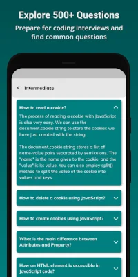 In addition to exercises, our app also offers questions and quizzes to test your understanding and knowledge. The question topics include interview questions and frequently asked questions, providing you with valuable insights and preparation for real-world scenarios. The quizzes are categorized into beginner, intermediate, and advanced levels, allowing you to track your progress and challenge yourself as you advance in your learning journey.