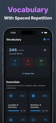 Jamo Korean also offers a smarter way to learn vocabulary. Instead of just giving you flashcards, the app uses an advanced algorithm to predict when you need to review a word, ensuring that you don't forget it. With a library of over 4,300 essential words, including native sentences for real-world context, and a stress-free scheduling system, you can easily incorporate vocabulary learning into your daily routine.