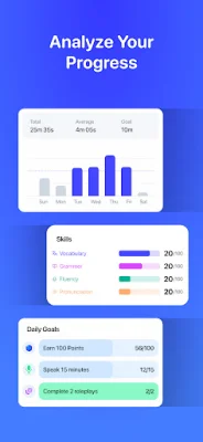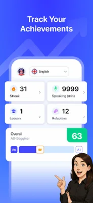 With progress tracking, you can monitor your daily, weekly, and monthly improvements with detailed reports. And for a more immersive learning experience, you can even practice through interactive video chats with lifelike avatars.