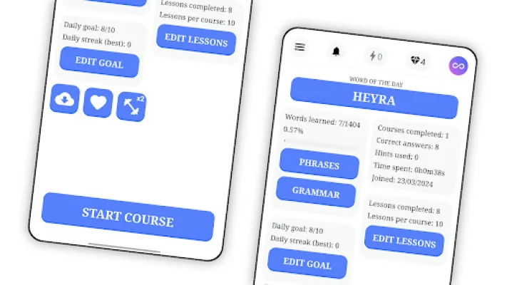Users can view their progress anytime with advanced stats, excluding features that require an internet connection. They can also view their phrases at any time, which is useful for studying or reviewing previously learned sentences. The app also offers a personalized course to help users memorize what they have learned.