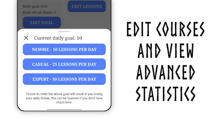 The app allows users to set a daily goal for their learning, whether they are casual or expert learners. It also provides notifications to let users know if they are at risk of losing their streak. Users can improve their vocabulary by correcting their mistakes through exercises.