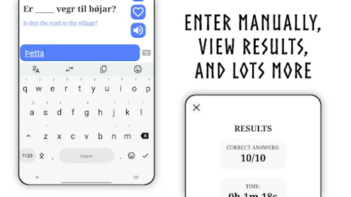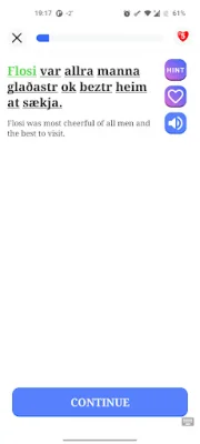 One of the main features of Learn Old Norse+ is the ability to fill in missing words in sentences with relevant contexts. Users can also listen to the text being read aloud and select the correct word to complete the sentence. Additionally, the app now includes an Old Norse Dictionary with search support.