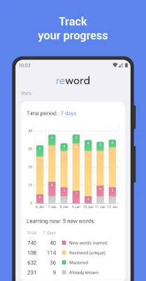 ReWord also allows users to track their progress and set daily goals, providing motivation and a sense of accomplishment as they work towards their language learning goals. The app also offers an offline mode, making it possible to learn Portuguese anywhere, anytime.