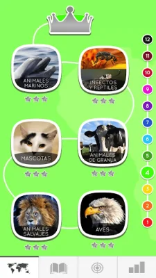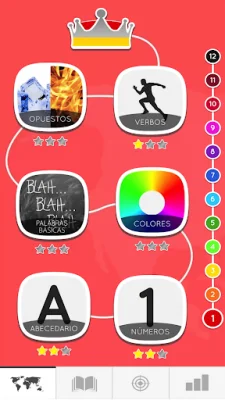 The Spanish game for beginners is a free application that helps users learn the Spanish language. It offers 1000 words with images and audio to study vocabulary, as well as lessons and exercises to practice reading, writing, and listening in Spanish. The app covers over 60 topics and 11 worlds, including basic topics like alphabet letters, numbers, colors, and verbs, intermediate topics like week days, animals, clothes, and body, and advanced topics like sports, house, Christmas, music, and more.
