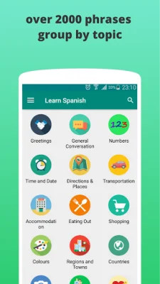 If you want to learn Spanish, then Learn Spanish - Aprender Español is the perfect app for you. This app contains over 2000 commonly-used Spanish phrases and vocabularies, making it ideal for travelers and beginners. It covers 18 categories, including greetings, general conversation, numbers, time and date, directions and places, transportation, accommodation, eating out, shopping, colours, cities and towns, countries, tourist attractions, family, dating, emergency, sickness, and tongue twisters. This comprehensive coverage ensures that you have all the necessary phrases and words to communicate effectively in Spanish.