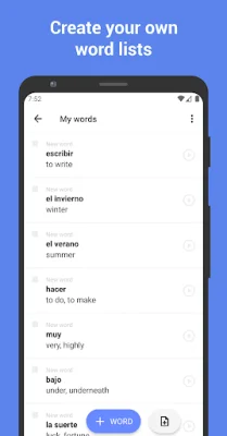 By using ReWord at least twice a day with regular breaks, users can easily learn five new words a day, resulting in 1,825 new words in their active vocabulary within a year. By increasing their daily goal and taking more Spanish lessons, users can accelerate their progress and learn Spanish even faster. ReWord is the ultimate foreign language learning app, designed to make the process hassle-free and enjoyable. Start using ReWord today and start speaking Español with confidence!