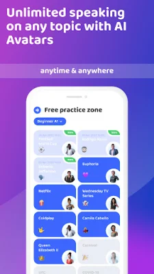 Praktika is an innovative language learning app that offers a unique and immersive experience for those looking to improve their English skills. With meticulously designed Avatars, each with their own backgrounds, stories, and accents, users can engage in meaningful conversations and role-plays, providing a truly authentic learning experience. The app offers over 1000 comprehensive courses, ranging from beginner to advanced levels, including preparation for exams such as IELTS and TOEFL. With a wide range of topics to choose from, including pop culture, architecture, and healthcare, users will never run out of intriguing subjects to learn and speak about. One of the key features of Praktika is its interactive content, which includes unlimited minutes of captivating material to boost grammar, pronunciation, vocabulary, and fluency. This content is available anytime, allowing users to practice and improve their skills at their own pace. The Avatars on Praktika are not just mere animations, but rather personalities that provide a supportive and judgment-free environment for language learning. Some of the Avatars include Alisha, a vibrant U.S. English tutor, and Alejandro, a dynamic Spanish English tutor who is also a former soccer player and culinary enthusiast. The app also offers a wide range of topics to practice, from economic growth and healthcare to role-playing as a sports commentator or a marketing executive. With topics such as Camila Cabello, Coldplay, and Queen Elizabeth II, users can learn about popular culture and current events while improving their English skills. Praktika is on a mission to empower the next billion learners to overcome English speaking barriers and seize new opportunities. The app believes that learning languages should be fun, engaging, and accessible to everyone. With Praktika, users can learn languages effectively, unlocking new career opportunities and making the most of their skills and knowledge. For any questions or assistance, users can reach out to the support team at [email protected]. The app also has clear terms of use and a privacy policy to ensure the safety and security of its users. Start your English speaking practice today with Praktika - the ultimate English learning app. With its practical and fun approach, users can perfect their pronunciation, conversation skills, and grammar while enjoying the learning process. So why wait? Download Praktika now and take your English skills to the next level!