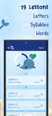 The app includes versatile game modes that allow children to learn how to read on their own or with the help of an adult. The design of the app is cute and playful, with an underwater theme where kids can collect bubbles to feed a whale. This unique incentive makes learning even more exciting for kids.