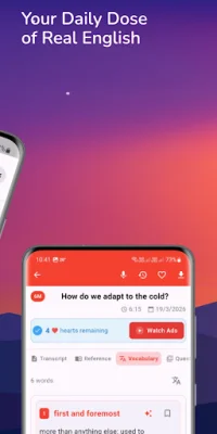 Our app is the perfect solution for anyone looking to improve their English skills in a fun, effective, and time-saving way. We have combined three world-renowned programs to create a comprehensive learning experience that will help you master English effortlessly. With our app, you can explore everyday topics in culture, science, and lifestyle in just six minutes with our 6 Minutes program. You can also discover idioms, slang, and phrases used in real-life conversations with our TEWS program. And for beginners, our Easy English program is perfect for learning simple vocabulary and basic sentence structures.