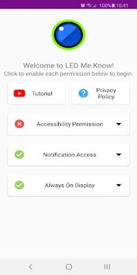 In order for LED Me Know to function properly, users must grant the Accessibility API permission. This allows the app to display the LED over any other app or when the screen is off. The app does not read, store, or access any personal data. By using LED Me Know, users acknowledge and consent to granting this permission. The app also offers premium features for a one-time fee of $1.99USD, including the ability to customize settings for each app, every contact or contact group, and the option to export/import/share settings.