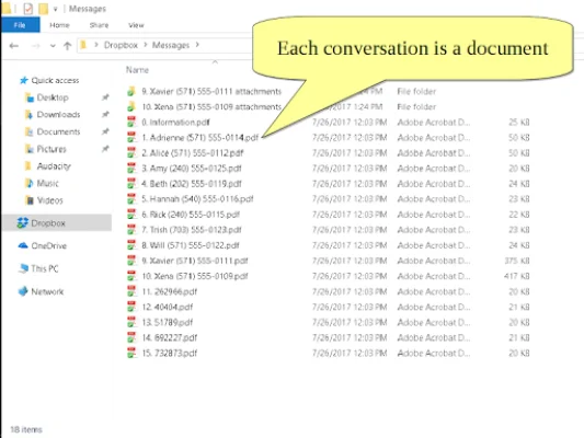With this app, users can export their text messages as a zip file with one PDF per conversation. They can then share these messages via email, Dropbox, or any other app. This feature is useful for ediscovery in lawsuits or as a backup archive.