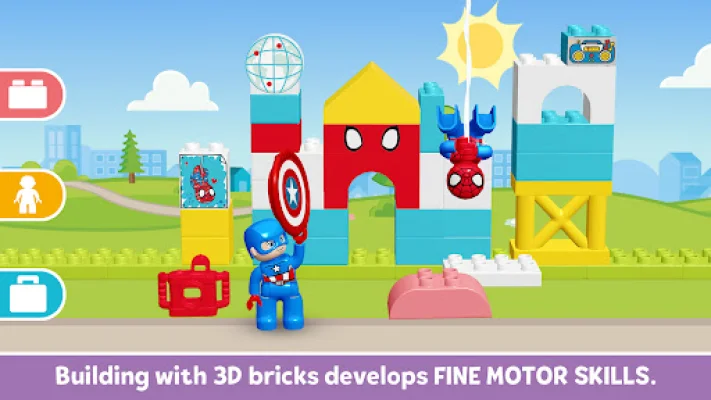In LEGO DUPLO MARVEL, children will have the opportunity to develop their imagination through pretend play with their favorite heroes. Positive play experiences will also help build their self-confidence, while child-centered 'explore and discover' play patterns will stimulate their curiosity. Using virtual LEGO DUPLO bricks, children can express their creativity and build to their heart's content. The app also offers fun and challenging puzzles to help children practice their reasoning and problem-solving skills.