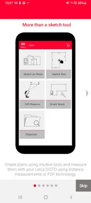 With the 'Sketch on Photo' feature, users can use Leica DISTO™ Bluetooth® technology to assign distance measurements to a picture taken with their device. This allows for easy documentation of measurement results and the ability to process them later in the office.