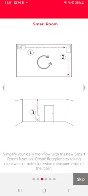 Smart Room is another feature of the app that allows users to create accurate floor plans by simply taking clockwise or counterclockwise measurements of a room. Once all measurements are taken, the app automatically generates the plan and the 'Diagonals' feature can be used to further enhance accuracy.