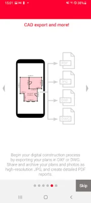 All measurements and floor plans can be exported in standard formats, including CAD drawings, JPG, and PDF. This allows for seamless integration of measurement data with digitized construction. The app supports a wide range of Leica DISTO™ devices, making it accessible to a variety of users.