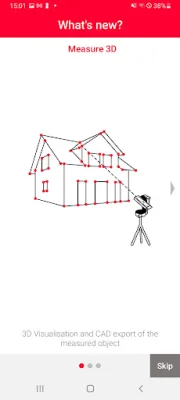 For those needing to create 3D plans, the 'Measure 3D' feature allows for accurate 3D plans to be generated and seamlessly integrated into CAD. P2P technology can be used for real-time 3D measurement visualization on-site, and measurements can be exported as a DXF or DWG file or as a detailed PDF report.